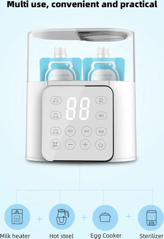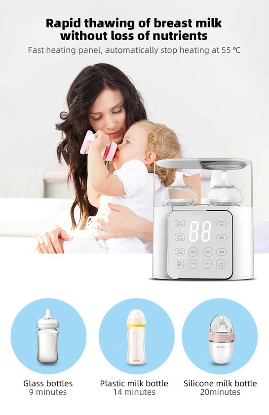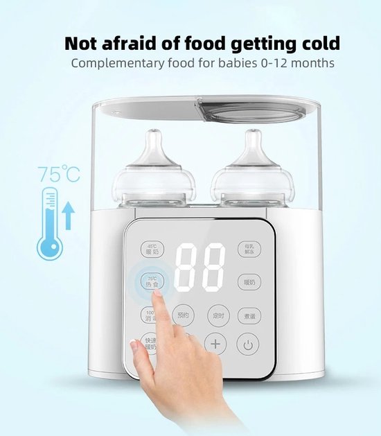 Double capacité : Avec un espace pour deux biberons en même temps, vous pouvez facilement préparer des aliments pour plusieurs bébés en même temps, ce qui est particulièrement pratique pour les parents de jumeaux ou d'enfants avec une petite différence d'âge.