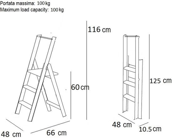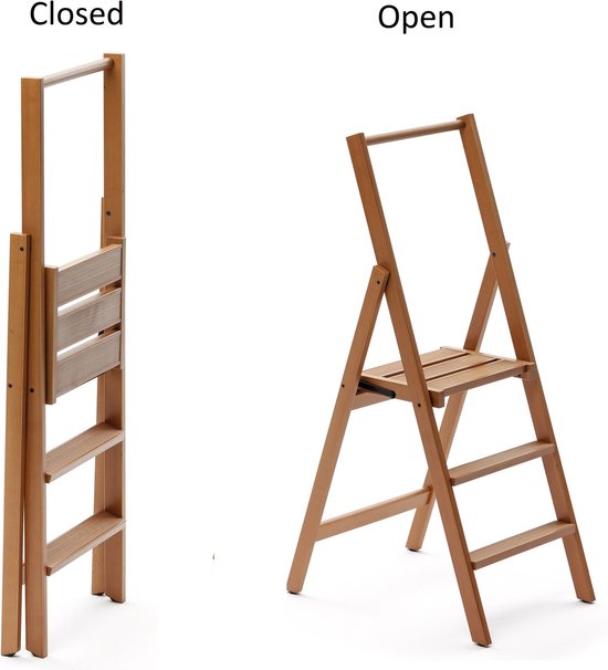 Echelle KIMORA 3 - marches antidérapantes - plateforme large - pieds en caoutchouc à la base - Couleur : cerisier