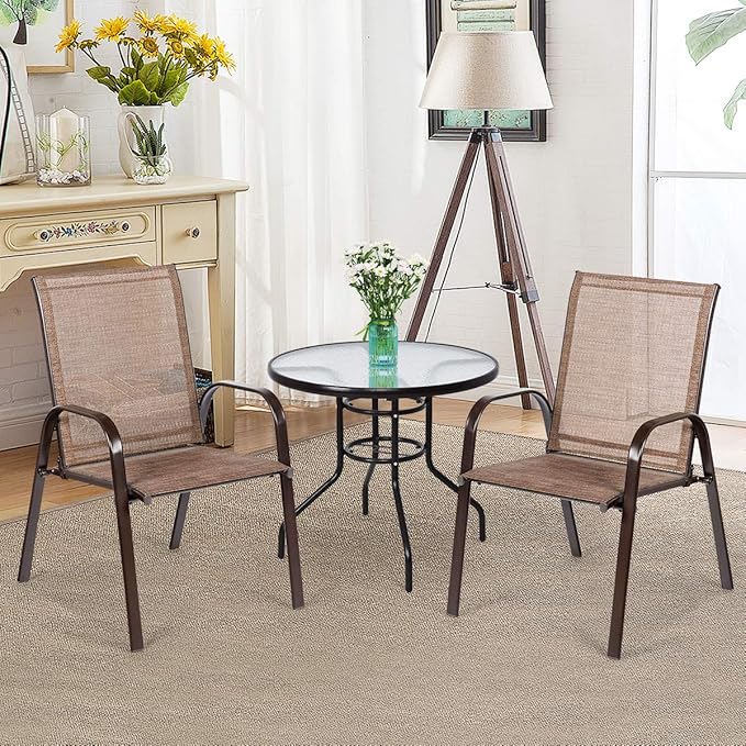 Construction robuste et stable : fabriquée à partir d'un cadre en acier revêtu de poudre, notre chaise de patio est robuste et solide et a une longue durée de vie. Le tissu haut de gamme de l'assise est suffisamment durable pour résister à l'épreuve du temps. De plus, les pieds munis de coussinets antidérapants forment un triangle avec le sol, ce qui renforce la stabilité. Confort d'assise : cette chaise d'extérieur est fabriquée dans un tissu de qualité supérieure qui respire, de sorte que vous ne vous sentirez pas étouffé, même par une chaude journée d'été. Les accoudoirs incurvés des deux côtés soulagent vos épaules et vos bras et vous permettent de vous détendre complètement. De plus, le dossier haut peut soutenir correctement votre colonne vertébrale dans la bonne position. Design compact pour un gain de place : Ces 2 fauteuils à accoudoirs ont un design compact qui permet de gagner beaucoup de place lors du rangement. De plus, cette chaise est légère, ce qui permet de l'emporter partout. Si vous avez besoin de chaises pour vos activités de plein air, cet ensemble de chaises de patio est un excellent choix. Design simple et moderne : Avec son aspect simple et épuré, notre chaise de patio se marie harmonieusement avec d'autres styles de meubles. Son design moderne ajoute une touche de décoration à votre environnement extérieur. Notre fauteuil peut être placé dans différents endroits, comme dans le jardin, sur la pelouse, sur le balcon et au bord de la piscine. Assemblage et nettoyage faciles : Avec tous les accessoires et les instructions détaillées, nos chaises de patio sont rapides et faciles à installer, vous épargnant ainsi beaucoup de temps et d'efforts.