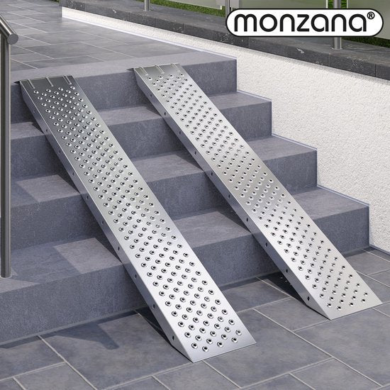 ROUILLE & DURABLE - Les 2 rampes MONZANA® en acier galvanisé de haute qualité sont résistantes à la rouille et se targuent d'une longue durée de vie. Chaque plaque a une capacité de charge allant jusqu'à 200 kg, ce qui signifie que l'ensemble des rampes peut supporter une charge totale de 400 kg.