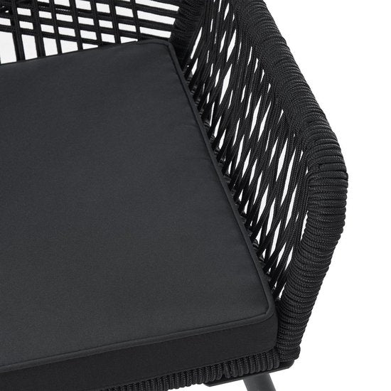 Chaise de jardin 2 pièces Kastos avec corde en maille - Noir - Coussin de siège inclus