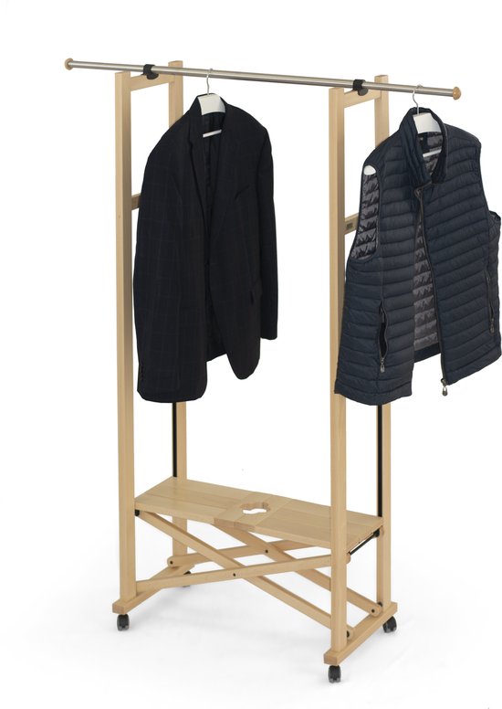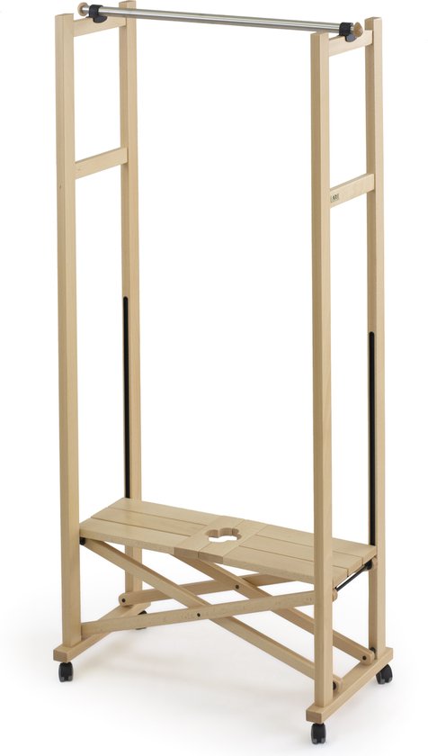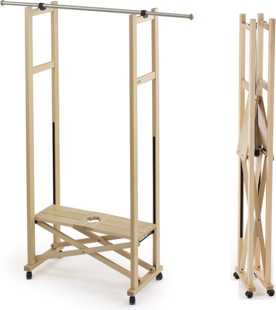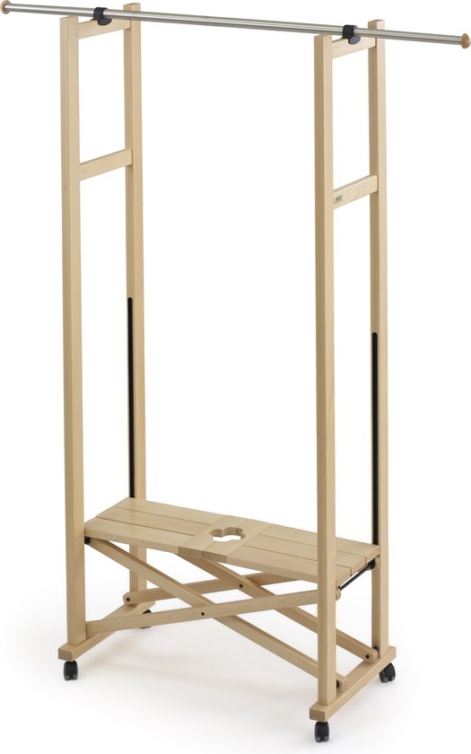 ELIOS étendoir à vêtements - tige extensible de 78 à 140 cm - étagère centrale en hêtre massif - Couleur : naturel
