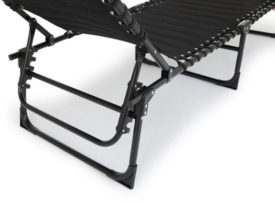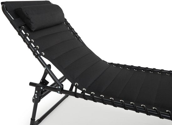 Chaise longue pliable 909 OUTDOOR - Avec coussin et dossier réglable - 189x59x30 cm - Jusqu'à 110 kg - Noir