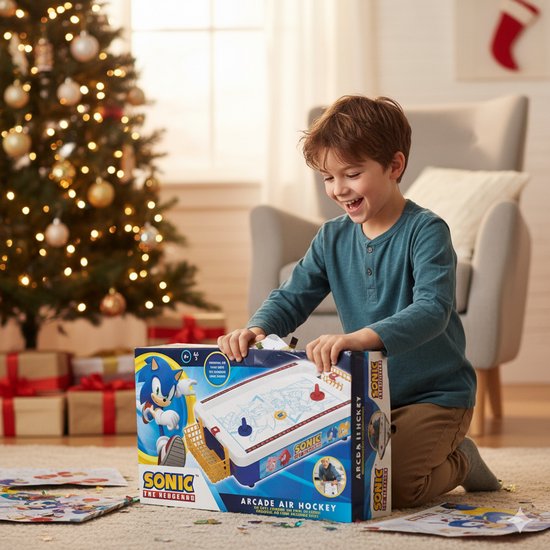 Cette table d'airhockey pour enfants compacte et robuste est conçue pour s'intégrer sans effort dans n'importe quelle salle de jeux ou chambre à coucher. Grâce au système d'air intégré, le palet flotte en douceur sur le terrain de jeu, offrant une expérience arcade réaliste et super rapide qui favorisera l'agilité et la vitesse de réaction de votre enfant. Le design vibrant représentant Sonic et ses amis, dont Tails, Knuckles et Amy Rose, ajoute une touche d'excitation à chaque partie.