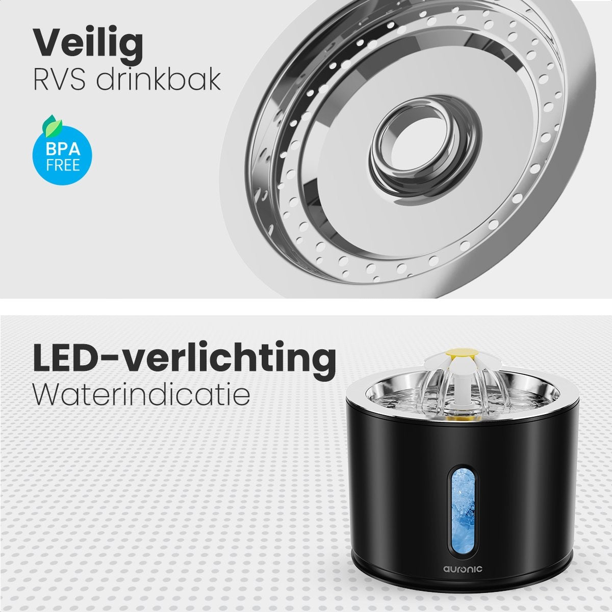 Chez Auronic, nous pensons que votre sécurité et celle de votre animal de compagnie sont importantes. La fontaine à eau pour animaux de compagnie d'Auronic porte le marquage CE. Cela signifie que le produit répond aux exigences légales en matière de sécurité et de performance. Vous avez donc toujours ce qu'il y a de mieux pour votre animal et vous pouvez faire vos achats en toute tranquillité.