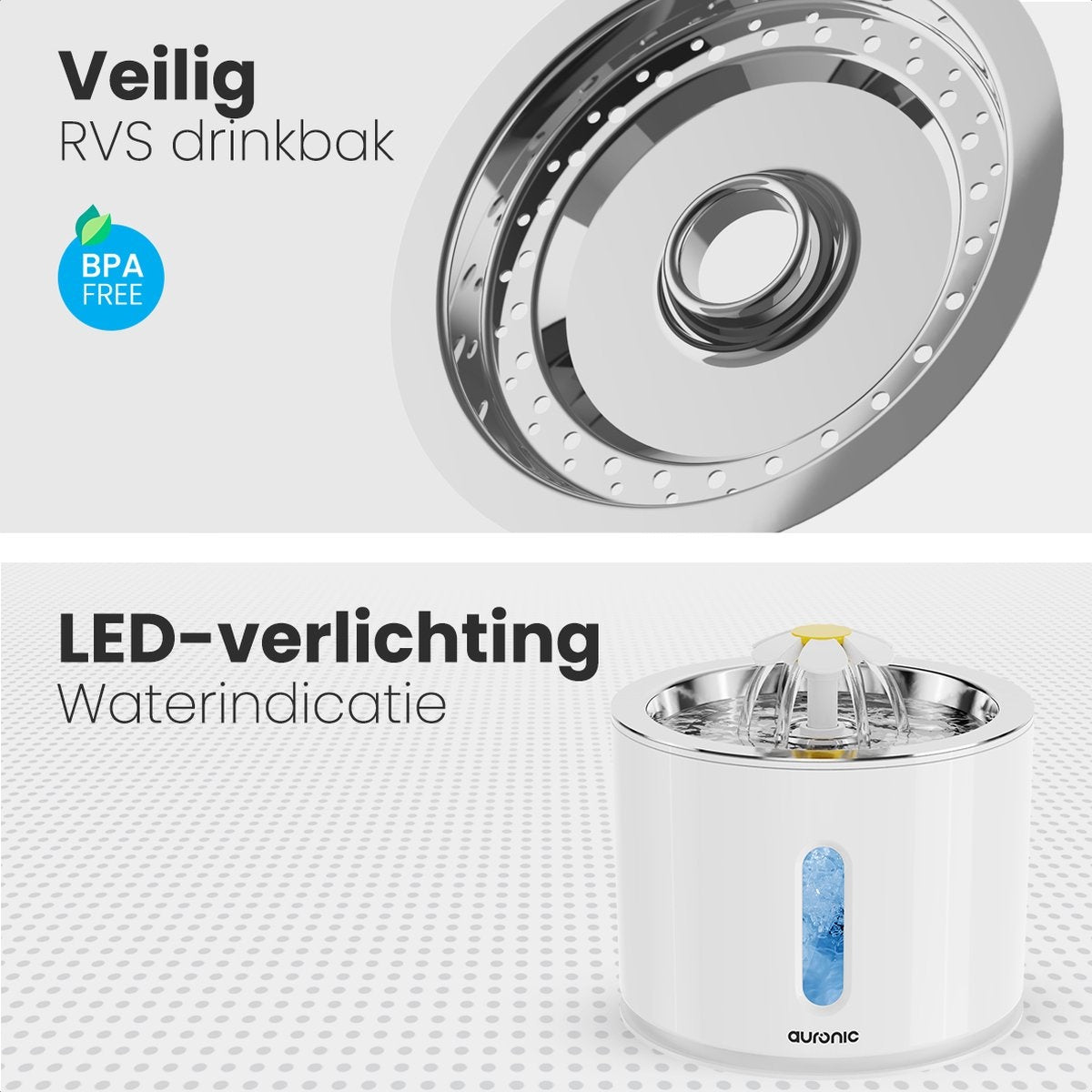 Chez Auronic, nous pensons que votre sécurité et celle de votre animal de compagnie sont importantes. Les abreuvoirs pour animaux de compagnie d'Auronic portent le marquage CE. Cela signifie que le produit répond aux exigences légales en matière de sécurité et de performance. Vous avez donc toujours ce qu'il y a de mieux pour votre animal et vous pouvez faire vos achats en toute tranquillité.