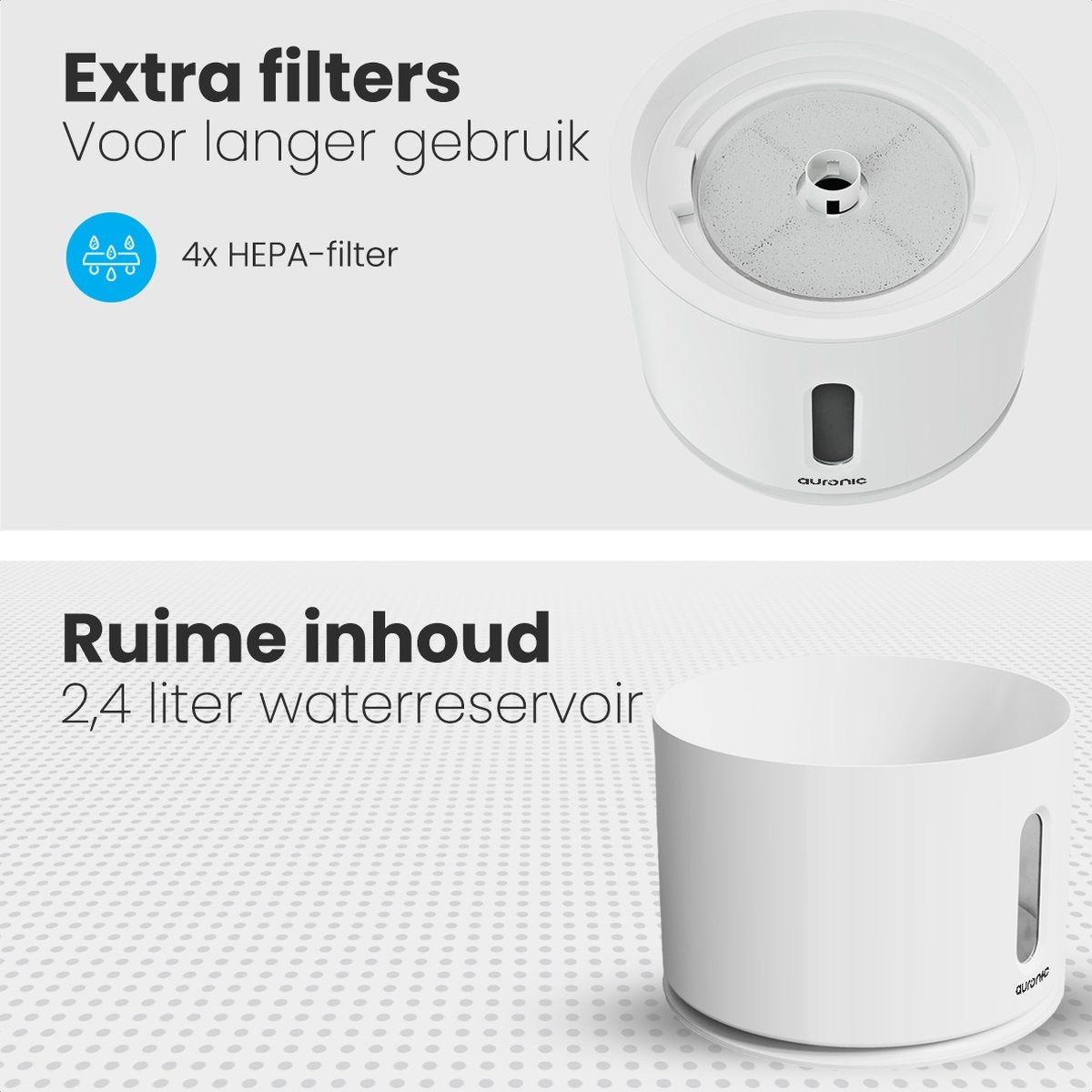 Abreuvoir Auronic - Fontaine à eau pour chats et chiens - 2.4L - Abreuvoir pour animaux - 4 filtres et 2 brosses inclus - Blanc