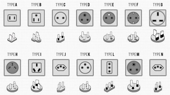 - Réceptacles pour : Suisse, Italie, Australie/Chine, Royaume-Uni, USA/Japon