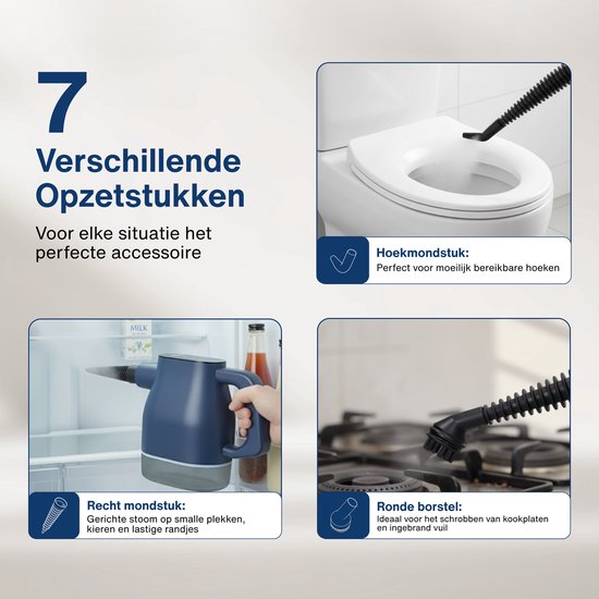 - Polyvalent à utiliser: Comprend 7 accessoires pratiques pour diverses applications telles que les vêtements, la salle de bain, la cuisine, les fenêtres et les zones difficiles d'accès.