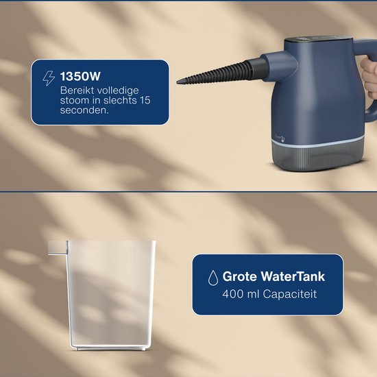 Pas besoin de trimballer des détergents agressifs ou des résidus de savon - ce nettoyeur vapeur portatif fonctionne uniquement avec de l'eau. La vapeur chaude élimine facilement la saleté et les bactéries de diverses surfaces, textiles et autres. Parfait pour les familles avec des animaux domestiques ou des enfants, ou si vous optez pour un résultat de nettoyage naturel.