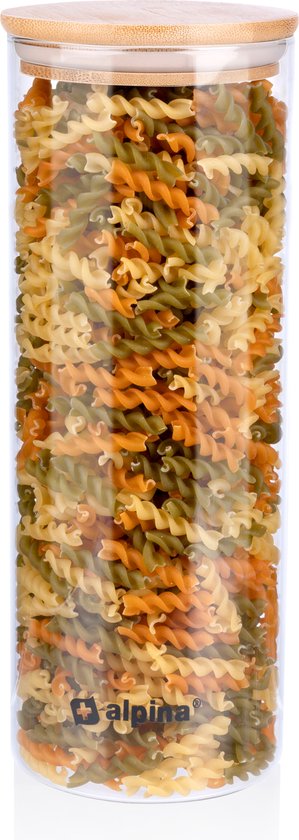 alpina Stockpot 1.5L - Pot en verre avec couvercle - Pot de stockage en verre borosilicate/bambou