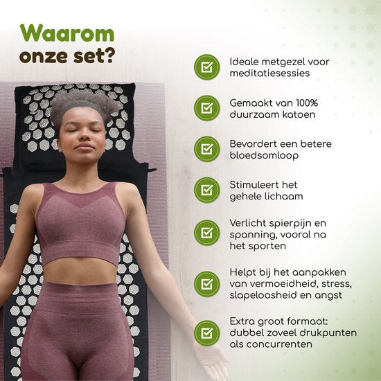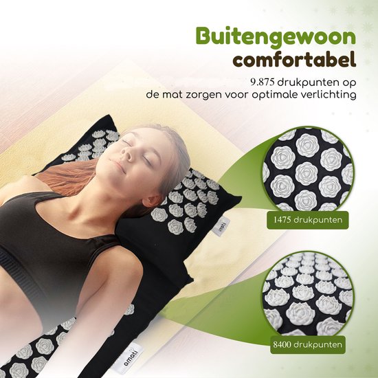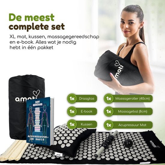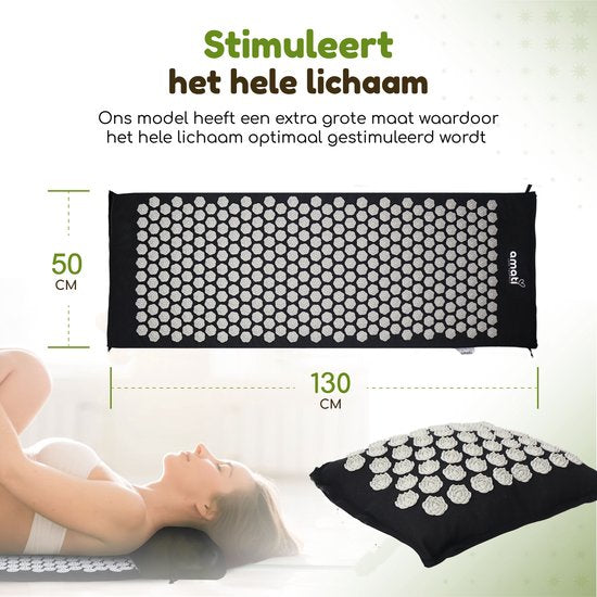 Découvrez les effets guérisseurs et stimulants d'un ensemble d'acupression Amati. Les 14 883 points d'acupression au total offrent un effet complet sur le corps. Vous ressentirez une sensation de sérénité dans tout votre corps car votre Amati stimule la circulation sanguine et les nerfs. Les tapis de clous Amati intensifient l'expérience et les résultats des exercices actifs comme la méditation et le yoga. De plus, vous pouvez également vous détendre merveilleusement sur ce tapis shakti. Amati est un outil très efficace pour les maux tels que : l'anxiété, l'insomnie et les faibles niveaux d'énergie. Seulement 15 - 30 minutes par jour procurent un effet relaxant et guérisseur ; tant physiquement que mentalement.