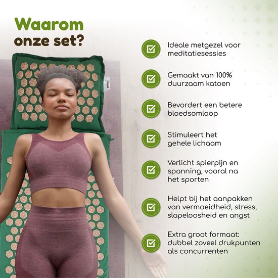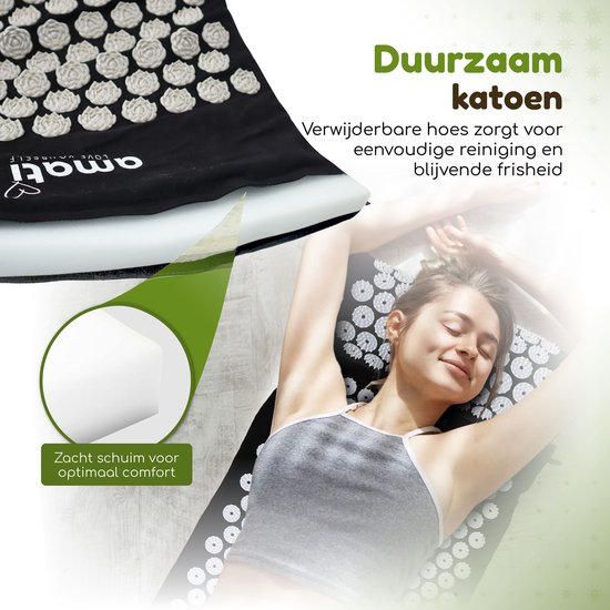 Découvrez les effets curatifs et stimulants d'un ensemble d'acupression Amati. Les 14,883 points d'acupression offrent un effet corporel complet. Vous ressentirez une sensation de sérénité dans tout votre corps, car votre Amati stimule la circulation sanguine et les nerfs. Les tapis de clous Amati intensifient l'expérience et les résultats des exercices actifs tels que la méditation et le yoga. De plus, vous pouvez également vous détendre merveilleusement sur ce tapis shakti. Amati est une aide très efficace pour des problèmes tels que : l'anxiété, l'insomnie et les niveaux d'énergie bas. Juste 15 - 30 minutes par jour procurent un effet relaxant et curatif ; à la fois physiquement et mentalement.