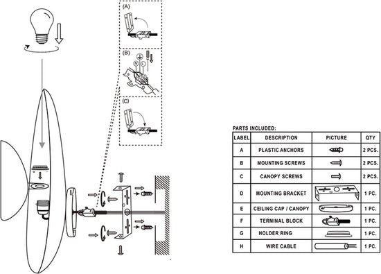 Recherchez-vous la bonne source lumineuse ?L'applique Brassi est livrée sans source lumineuse, vous devrez donc acheter la vôtre. Lors du choix d'une source lumineuse, il est important de prêter attention au nombre de points lumineux, à la puissance maximale et à la douille de la lampe.