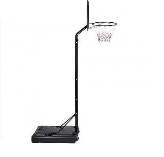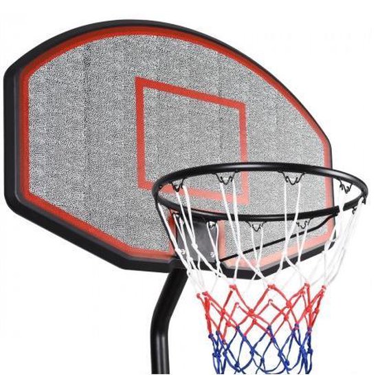 Ce terrain de basket mobile est facile à déplacer grâce aux roulettes de transport pratiques. La base peut être remplie de sable ou d'eau pour plus de stabilité. La hauteur de l'anneau est réglable, allant de 205 cm à un maximum de 310 cm.