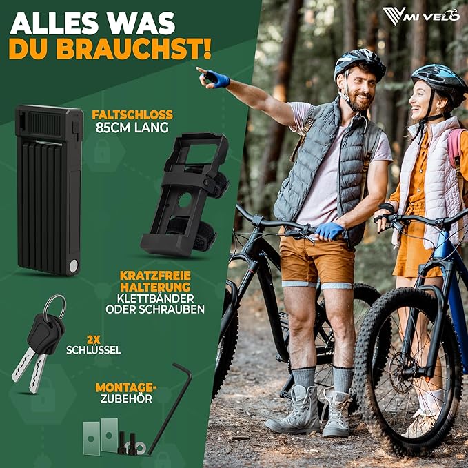Le MIVELO Folding Lock &ndash ; 85 cm &ndash ; with Key offre une solution sûre et conviviale pour sécuriser correctement votre vélo, e-bike ou scooter. Grâce aux 8 éléments de commutation robustes et au noyau en acier inoxydable, cet antivol pliant présente une résistance élevée au sciage, à la rupture et au forçage. Le cylindre intégré Safe-Secure empêche les manipulations et garantit un fonctionnement souple, sans blocage.