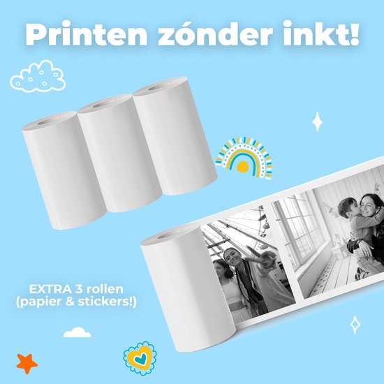 La fonction d'impression thermique permet d'imprimer des photos et des autocollants en noir et blanc sur le papier d'impression thermique inclus (avec 3 rouleaux inclus). Aucune encre n'est nécessaire, ce qui la rend sûre et conviviale pour les enfants.