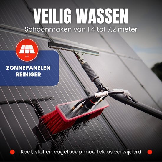 Aqualitá® Perche télescopique pour le lavage des vitres 4.6M avec Chamoisole - Lave-vitre télescopique - Nettoyeur de panneaux solaires - Set de lavage de vitres perche télescopique avec passage d'eau - Brosse de lavage télescopique - Set de brosse télesc