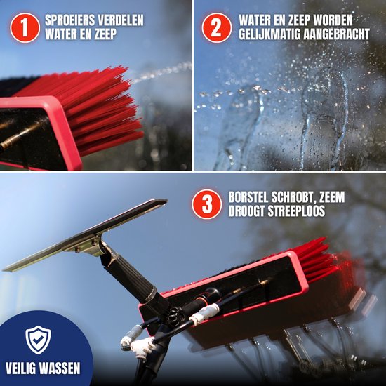 qui vous permet de régler facilement la bonne quantité. Pour les fenêtres plus sales, vous avez naturellement besoin de plus de savon que pour les fenêtres avec lesquelles seule la poussière a été traitée. Grâce au distributeur de savon réglable, vous pouvez donc nettoyer efficacement tout en économisant du savon!