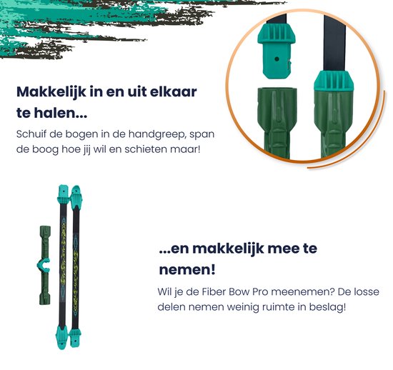 - Convivialité:L'installation du Fiber Bow Pro est simple.ro facile à assembler. Placez les pièces ensemble, serrez la corde, attachez la flèche à la corde et puis.... laissez-le voler!