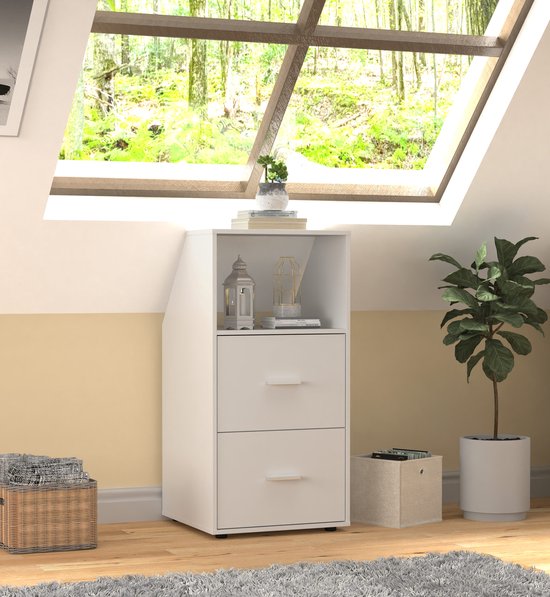 Armoire de rangement pratique blanche pour vêtements, idéale pour les murs inclinés - tirez le meilleur parti de votre espace près d'un toit incliné ou sous une lucarne. Cette armoire de rangement multifonctionnelle est spécialement conçue pour être placée contre un mur incliné, sous un toit en pente ou une lucarne ou dans un angle incliné. Elle est idéale pour les greniers, les chambres à coucher, les bureaux ou les chambres d'étudiants où l'espace doit être optimisé. Avec un angle d'environ 45 degrés et une hauteur d'environ 68 cm, cette armoire est un complément parfait pour de nombreuses pièces standard. Dimensions : largeur : 50 cm x hauteur : 100 cm + 2,5 cm de pieds x profondeur : 50 cm. Pour plus de détails, voir le dessin de spécification dans l'annonce.