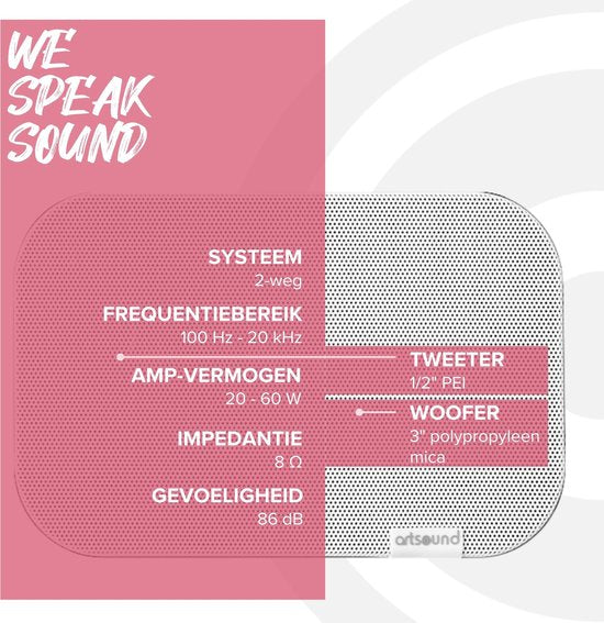 Spécifications du produit:, Informations de base sur le produit : - Langues du manuel : néerlandais, anglais, français - Couleurs primaires : blanc - Profondeur du produit : 112 mm - Hauteur du produit : 180 mm - Largeur du produit : 115 mm - Poids du produit : 1200 g - Matériau : ABS , Propriétés physiques : - Forme : Rectangle - Nombre de pièces : 2 - Type de support : Support mural avec articulation à rotule , Caractéristiques techniques : - Type de montage : Support mural - Gamme de fréquences : 100 Hz-20 kHz - Sortie sonore : 2 voies - Impédance des haut-parleurs : 8 Ω - Gamme de puissance de l'amplificateur : 20-60 W - Caractéristiques des woofers : 3" cône en papier - Caractéristiques du tweeter : 1/2" PEI - Bass reflex : Oui - Blindage magnétique : Non - Bouton intérieur/extérieur : Non, Données ambiantes : - Emplacement approprié : Utilisation en intérieur uniquement - Surface d'utilisation : <40 m² , Caractéristiques d'utilisation : - Sensibilité : 86 dB , Inclus : - Supports inclus : Oui