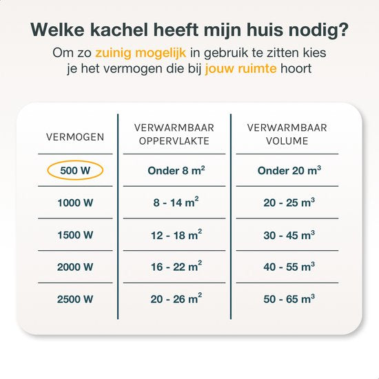 - Capacité 500 W - Convient aux surfaces inférieures à 8m² & 8m³