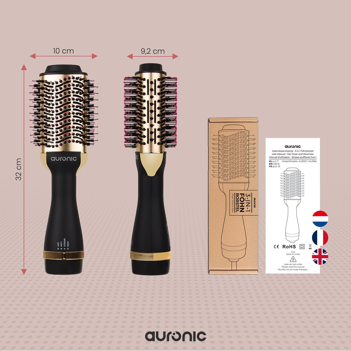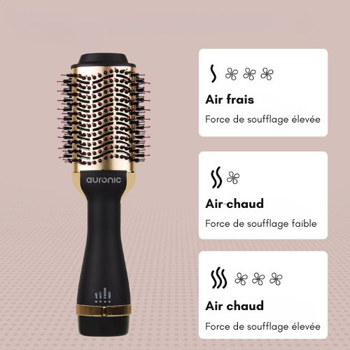 Auronic - Brosse soufflante et coiffante 3 en 1 - 1000W - Noir/or