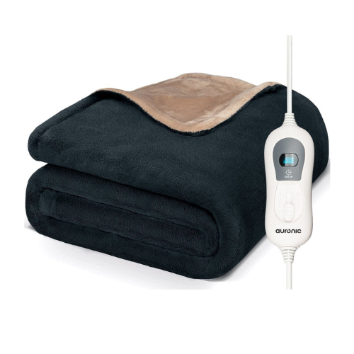 Couverture chauffante électrique Auronic - Sur-couverture - 2 personnes - 3 niveaux - Avec minuterie - 200 x 180 cm - Anthracite