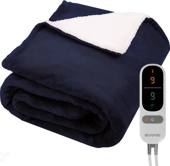 Couverture électrique Auronic - Couverture chauffante - Polaire Sherpa - 9 niveaux de chaleur et minuterie - Couverture - 200x180 - 2 personnes - Bleu