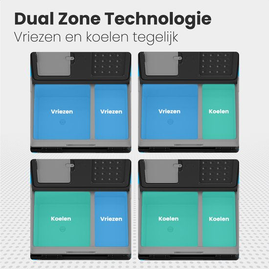 Grâce à la technologie avancée à double zone de cette glacière, vous pouvez choisir comment refroidir vos articles. Que vous souhaitiez refroidir les deux compartiments, en congeler un et refroidir l'autre ou congeler les deux, tout est possible ! Idéal pour les campeurs qui souhaitent emporter un mélange d'aliments et de boissons.