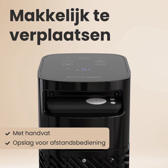 Ce réchaud n'est pas seulement puissant, mais aussi slLe design est très convivial. Grâce à la poignée intégrée, vous pouvez facilement déplacer le poêle dans n'importe quelle pièce où un confort supplémentaire est nécessaire. Vous avez régulièrement du mal à trouver la télécommande ? Ne vous inquiétez pas ! Il y a un compartiment spécial à l'arrière du poêle qui est parfait pour ranger la télécommande. Cela vous permet de garder tout bien rangé et à portée de main, tandis que le design élégant et compact combine fonctionnalité pratique et facilité d'utilisation.