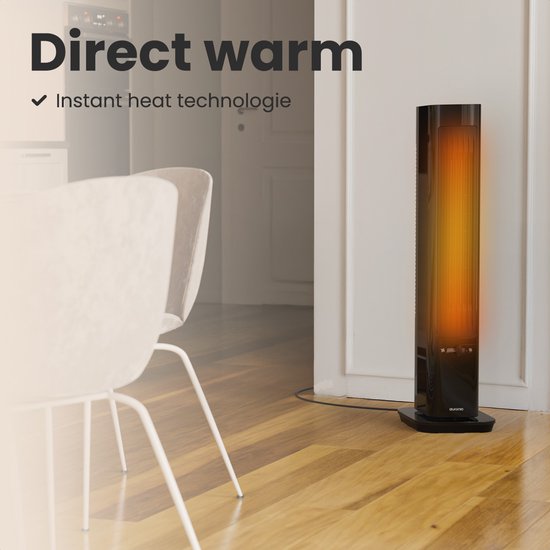 Sentez la chaleur immédiatement. Avec une puissance de pas moins de 2200 watts et un élément céramique efficace, cette tour de chauffage est capable de chauffer rapidement.Pour obtenir rapidement une température agréable dans les grandes pièces telles que le salon, le grenier ou le bureau. La technologie innovante de la "chaleur instantanée" garantit que vous n'aurez pas à attendre dans le froid. Grâce au puissant flux d'air, idéal pour les pièces jusqu'à 40m², la chaleur (ou la fraîcheur) atteint tous les coins de la pièce pour une sensation constante et agréable.