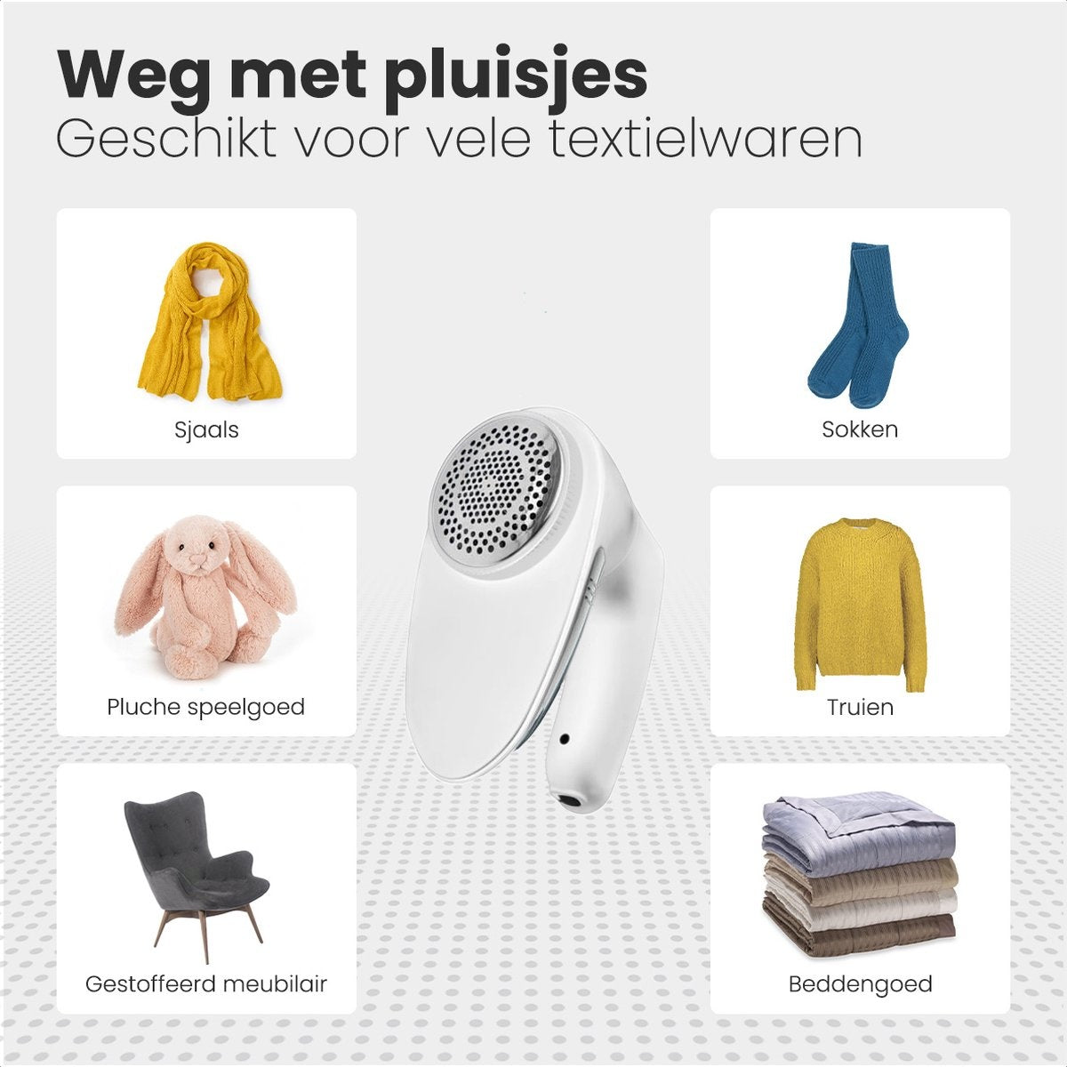 L'ontpluizer Auronic rend vos vêtements ou meubles préférés comme neufs en 3 minutes. Sans fil et 60 minutes d'utilisation non-stop. Des meubles aux couettes, les 3 tailles de mailles différentes signifient que l'ontpluizer Auronic peut être utilisé pour tout. Facile à nettoyer avec la brosse et à transporter dans le sac de rangement inclus. La batterie de l'ontpluizer est simplement rechargeable, ce qui permet de ne pas gaspiller de batterie, ce qui est néfaste pour l'environnement.