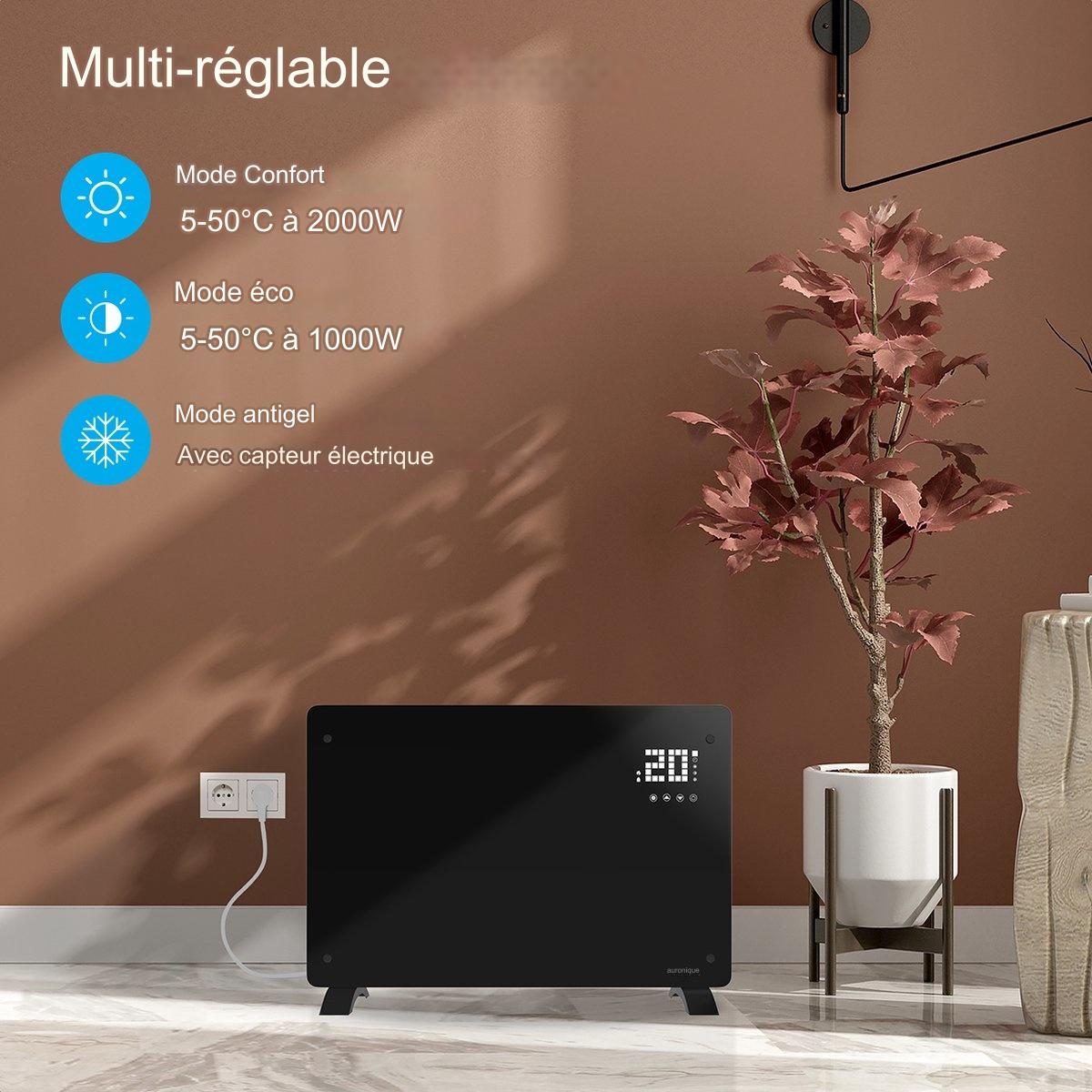 Radiateur éléctrique mobile - Auronic - Thermostat et télécommande - 2000 W - Noir