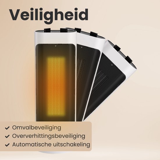 Profitez en toute confianceDans l'ambiance chaleureuse, ce radiateur soufflant offre une double sécurité. La protection intégrée contre le basculement garantit que l'appareil s'arrête immédiatement en cas de renversement accidentel. Cela fait de ce poêle une option sûre pour les familles avec des enfants ou des animaux domestiques. De plus, la protection contre la surchauffe empêche le poêle de devenir trop chaud en l'éteignant automatiquement. Vous pouvez l'utiliser sans souci même si vous quittez la pièce pour un moment.