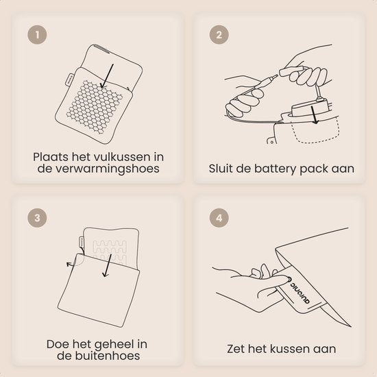 L'oreiller chauffant Auronic est équipé d'une puissante batterie de 10.000 mAh, ce qui vous assure une chaleur constante. En rechargeant le coussin pendant son utilisation, vous n'êtes jamais privé de la chaleur douillette.Profitez en toute sécurité et confortablement d'une chaleur agréable. De plus, le coussin chauffant peut également être utilisé sans câble, ce qui vous offre une plus grande liberté. Que vous lisiez un livre, regardiez la télévision ou travailliez à la maison, ce coussin chauffant vous procurera des heures de luxe et de chaleur. Sur le premier réglage, vous avez jusqu'à 4 heures de chaleur soutenue, le deuxième réglage offre jusqu'à 3 heures et le troisième réglage garantit jusqu'à 2,5 heures de chaleur.