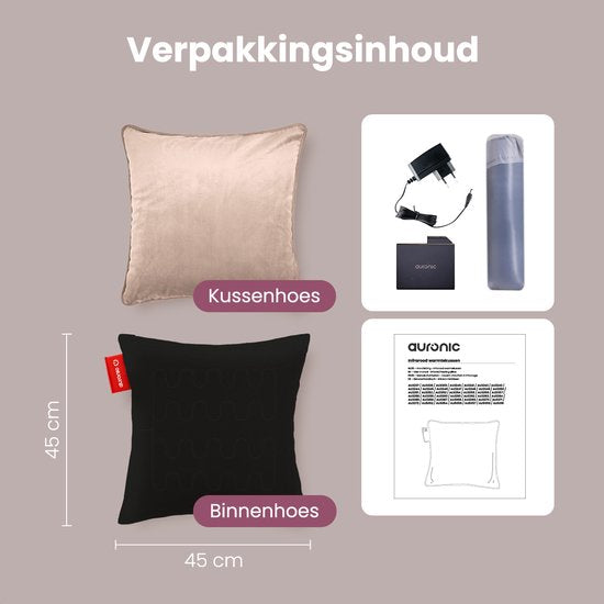 Auronic Heat Pillow - Velours - 45x45 - rechargeable sans fil - oreiller électrique - infrarouge - rose