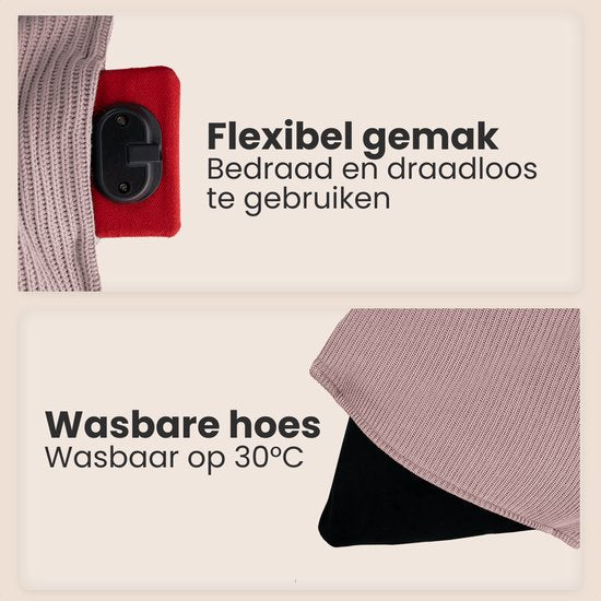 Auronic Heat Pillow - Tricoté - 45x60 - Sans fil - Rechargeable - Oreiller électrique - Infrarouge - Rose poudré