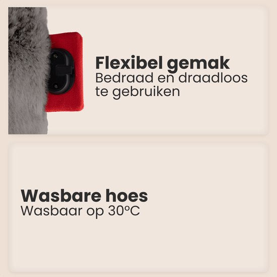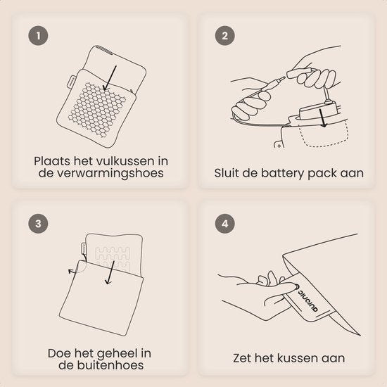 L'oreiller chauffant Auronic est équipé d'une puissante batterie de 10 000 mAh, de sorte que vous ne manquerez jamais de chaleur. Grâce à la fonction permettant de charger le coussin pendant que vous l'utilisez, vous êtes toujours assuré de bénéficier d'une chaleur agréable. De plus, le coussin chauffant peut également être utilisé sans fil, ce qui offre une flexibilité supplémentaire. Que vous lisiez, regardiez la télévision ou travailliez à la maison, ce coussin chauffant vous procurera des heures de chaleur et de confort. Au niveau 1, vous avez jusqu'à 4 heures de chaleur, au niveau 2 jusqu'à 3 heures et au niveau 3 jusqu'à 2,5 heures de chaleur.