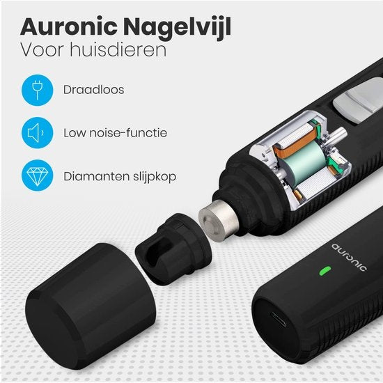 Auronic lime à ongles électrique - pour animaux - rechargeable - sans fil - tête de lime diamantée - chiens/chats - noircissement
