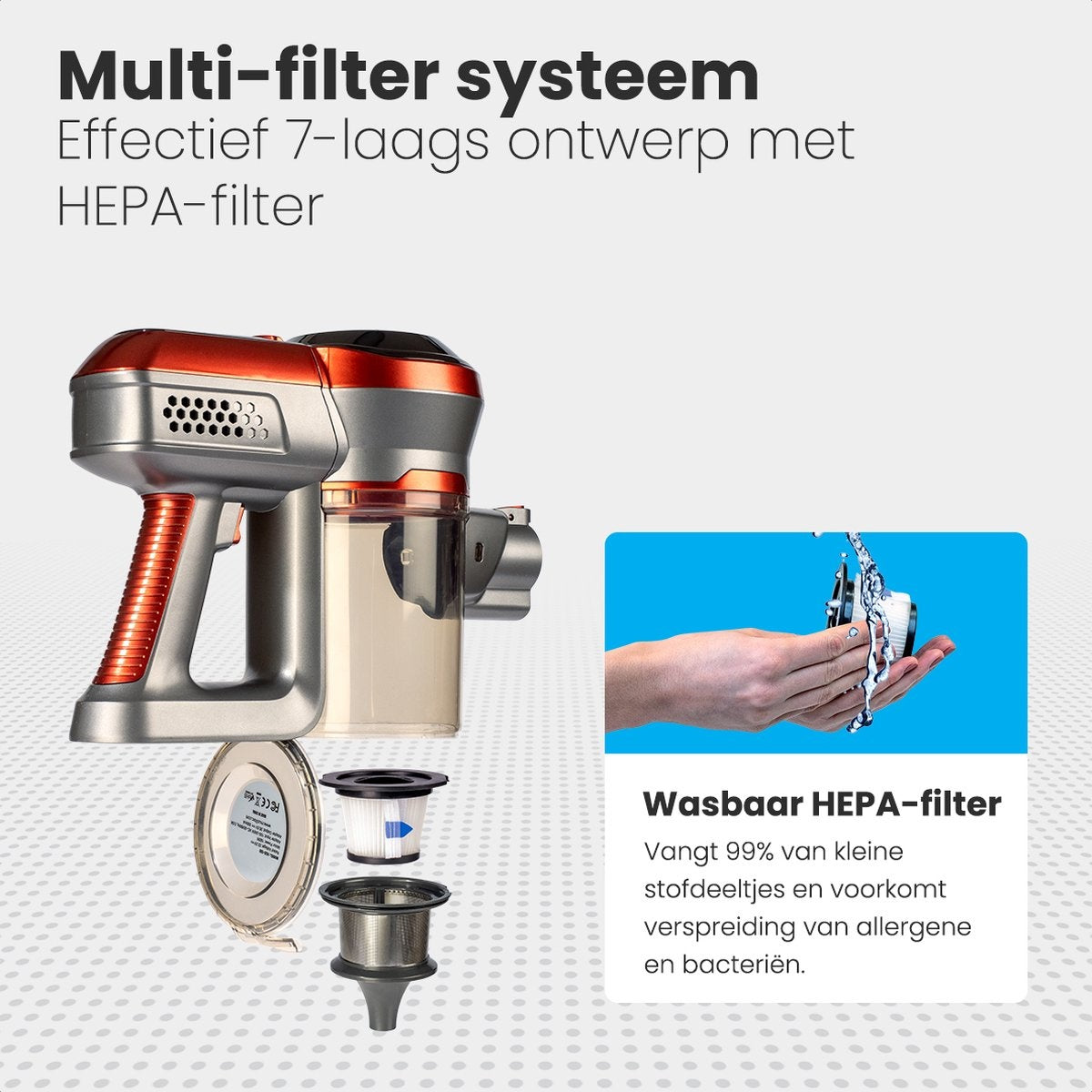 Aspirateur Sans fil - Auronic - Sans sac - 4-en-1 - Alimenté par batterie - 160W - Rouge/Gris