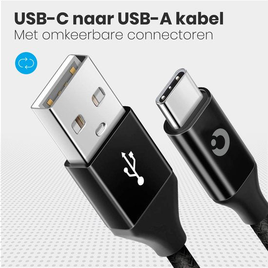 Auronic Câble USB-C - 3M - 2,4A - USB C vers USB-A - Nylon tressé - Noir