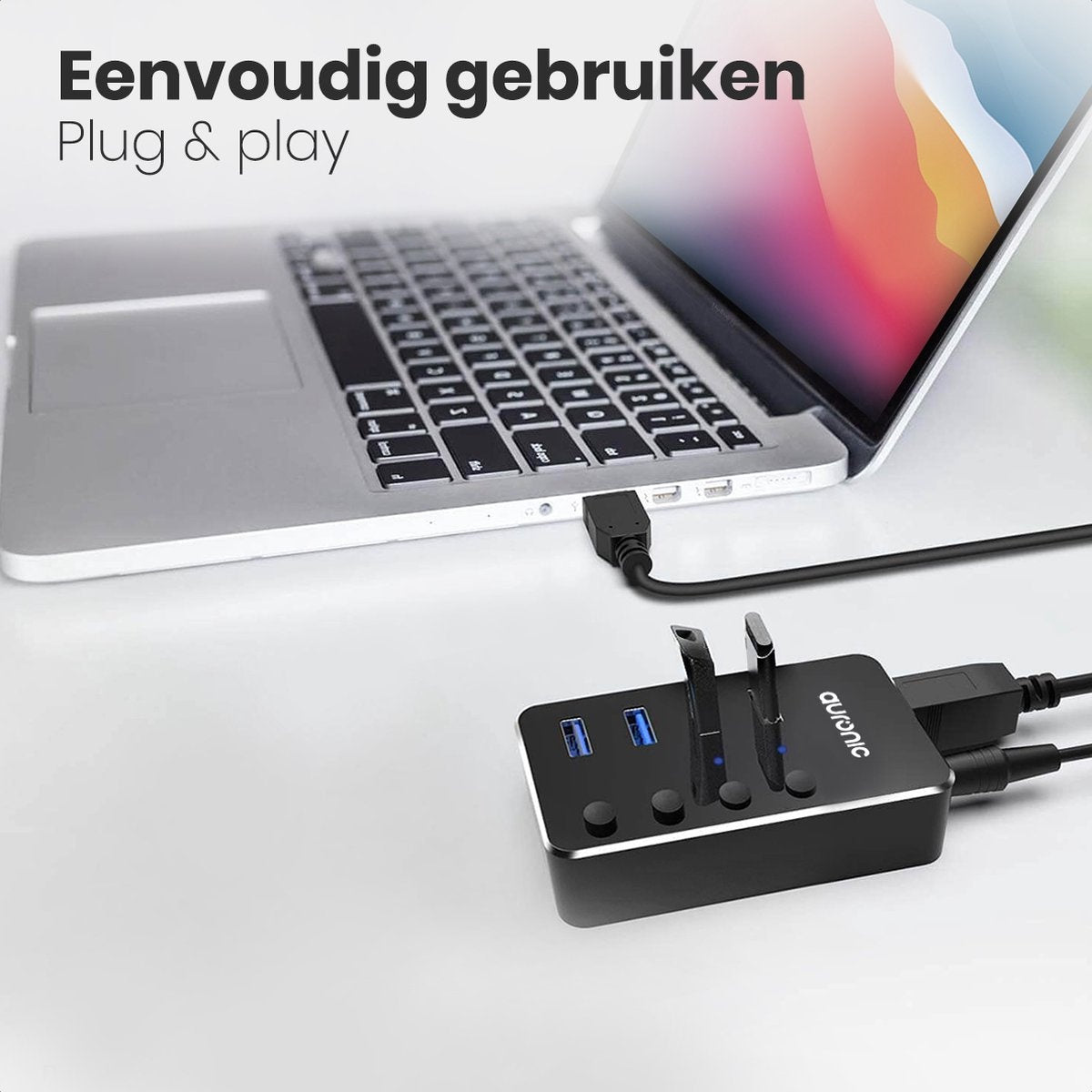 De nombreux concentrateurs USB doivent être connectés à un PC ou à un ordinateur portable pour fonctionner. Grâce à sa source d'alimentation externe, le hub USB Auronic fonctionne également avec une simple prise murale ! Cela vous permet d'utiliser le hub pour charger plusieurs périphériques USB même sans ordinateur portable ou de bureau.