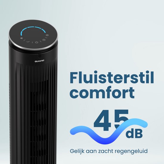 Ce ventilateur tour Auronic offre une circulation d'air puissante dans un design peu encombrant. Avec cinq vitesses différentes, une fonction d'oscillation à 90 degrés et un niveau sonore de seulement 45 dB, c'est le ventilateur idéal pour votre salon ou votre chambre. Ses fonctions intelligentes, telles qu'un panneau de commande numérique, une télécommande et différents modes de ventilation, offrent un confort optimal, tandis que son extérieur noir compact s'intègre parfaitement à tout intérieur moderne.