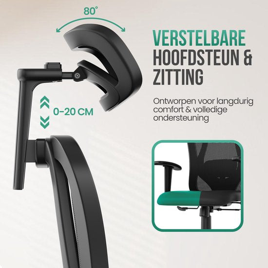 Avalo Ergonomic Office Chair With Headrest - NEN1335 - Chaises de bureau pour adultes - Chaise de bureau - 2 jeux de roues anti-rayures pour sols durs et souples inclus