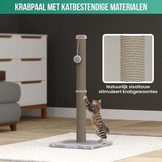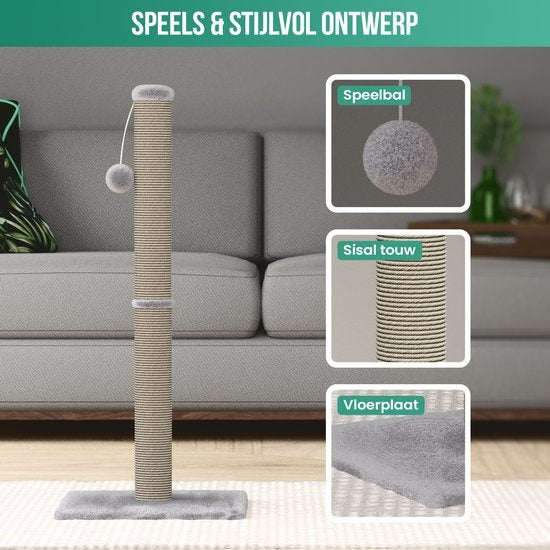 Un griffoir pour chat peut être une horreur. Ce griffoir est très discret, mesurant 36 x 36 x 74 cm. La peluche grise s'intègre bien dans tous les intérieurs, le sisal est discret et vous pouvez placer le griffoir pour votre chat dans un coin discret. Il ne vous dérange pas vraiment et votre animal de compagnie profite de tous les avantages du meuble à griffer.