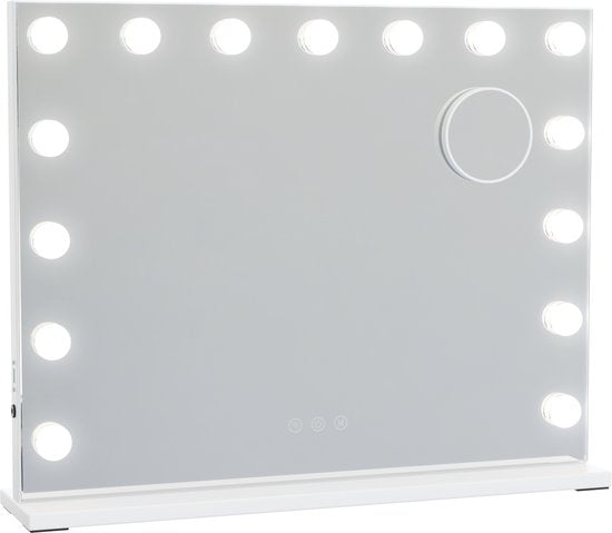 Avalo - Miroir de maquillage avec éclairage - 56x44 CM - Miroir Hollywoodien - Miroir avec éclairage - Miroir de maquillage - 3 modes d'éclairage graduables - grossissement 10x - chargeur USB intégré
