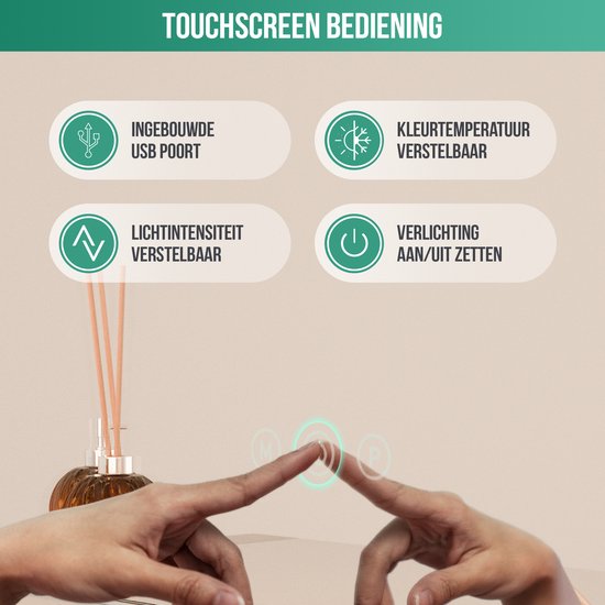 Le miroir de maquillage Avalo avec éclairage offre une fusion idéale entre l'élégance, la fonctionnalité et l'éclairage professionnel. Avec ses dimensions généreuses de 56 x 44 cm, 15 lumières LED et un port USB pratique, ce miroir hollywoodien est indispensable à tout amateur de beauté. Grâce à l'éclairage réglable en continu, vous pouvez facilement ajuster la luminosité en fonction de vos besoins, tandis que le miroir grossissant 10x amovible garantit une précision maximale.