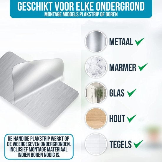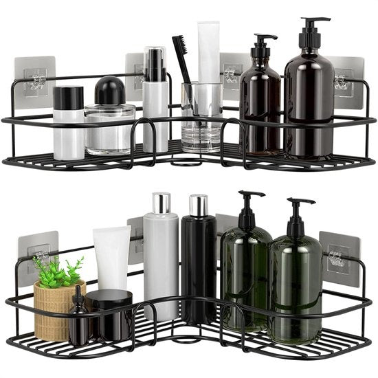 Vous souhaitez ranger votre matériel de douche sans faire de trous dans le mur ? Dans ce cas, une étagère de salle de bains autoadhésive est parfaite pour votre douche ! Notre ensemble de support de douche estattaché en 1 minute, contient un rebord pratique, qui offre un confort supplémentaire car vos bouteilles ne peuvent pas tomber et offre suffisamment d'espace pour tous vos articles de bain. Avec un matériau RVS solide et une capacité de charge de 10 kg, votre nouveau support de salle de bains élégant tient fermement debout, sans perceuse ni vis.